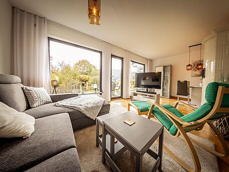Ferienwohnung (65m²) | WLAN l E-Ladesäule | barrierefrei | Nichtraucherhaus | Waschmaschine | Außen-Whirlpool | Terrasse | Garten | Parkplatz | Spülmaschine | Zustellbett möglich | Ausblick | Haustiere NICHT erlaubt